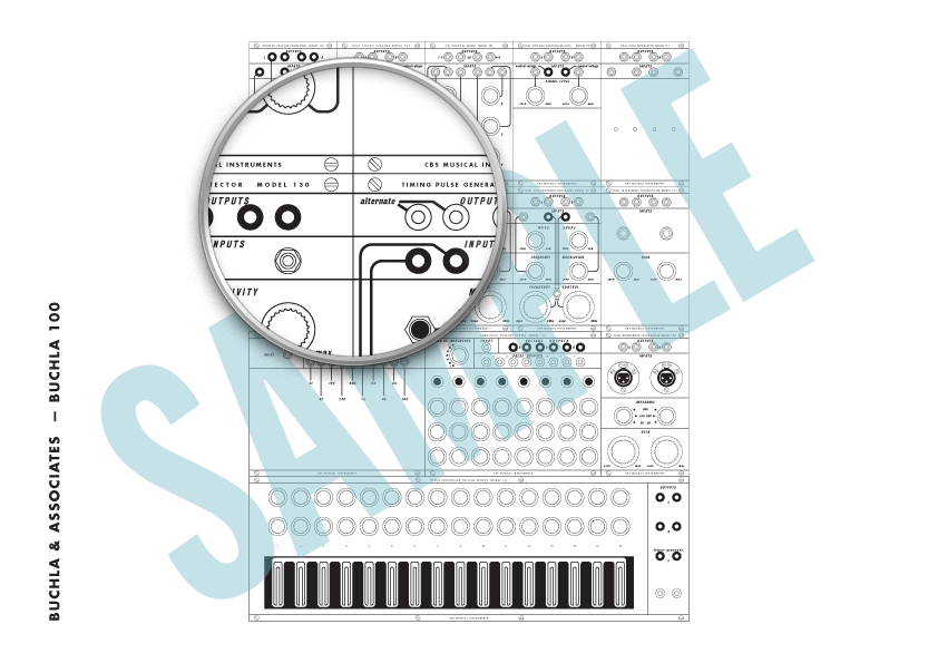 The Buchla 200 modules underwent a slight change of design in the mid-seventies, adding new knobs and introducing some new modules. A complete range of modules across the entire catalogue is available, so please email me with your configuration and I'd be happy to put together a patch sheet for your system.