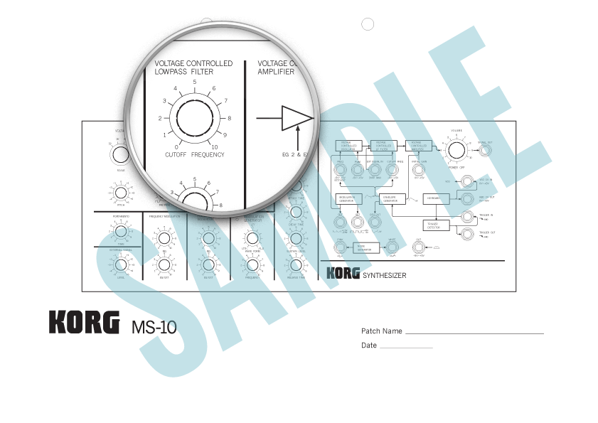 Korg's MS-era Guitar Synth simply took a standard 1/4" instrument input. No dedicated controller required. This patch sheet shows all patch points, both front and back, to allow you to record your unique setup.