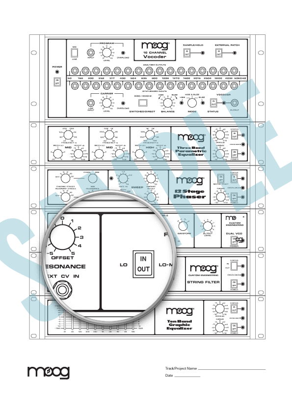 Moog began introducing its line of signal processors back in early 1978, starting with the Ten-Band Graphic Equalizer and the Three-Band Parametric EQ. Over the course of the next year or so they added a Vocoder (licensed from Harold Bode), Stereo Phaser, Dual VCO and String Filter—the latter two labelled with the name of the newly-founded "Moog Custom Engineering" division.